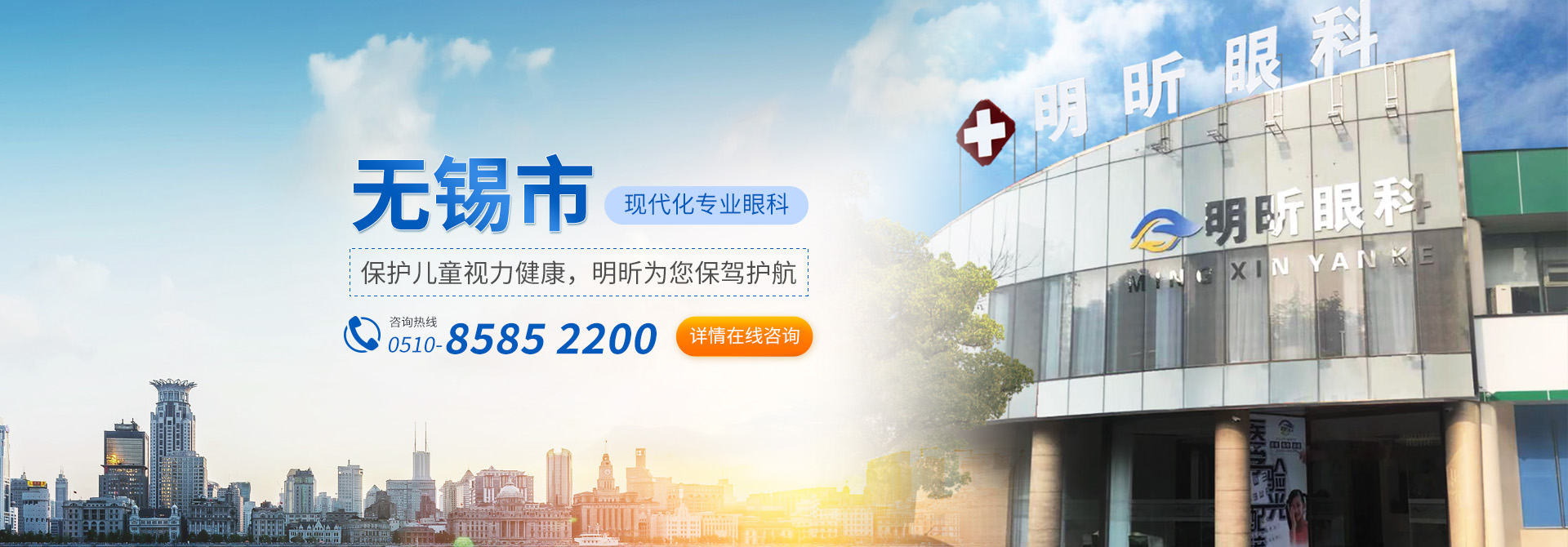 無錫明昕眼科醫院位于無錫市太湖西大道806號,是一家以治療青少年、兒童弱視、斜視、近視為特色,集醫療、保健、科研于一體的大型現代化專業眼科醫療機構。